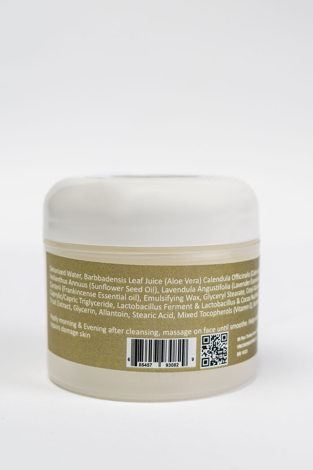 This powerful, healing moisturizer works to heal and regenerate the skin. It contains Calendula that repairs skin elasticity, restores skin barrier and helps with eczema. Sunflower Oil which is rich in anti-oxidants, soothes redness, evens skin tone and prevents premature aging. Other ingredients include, Aloe Vera Gel, Turmeric, Lavender Oil, Frankincense, Squalane, Jojoba Oil, all have healing properties that will rejuvenate, soften and brighten the skin without irritation.