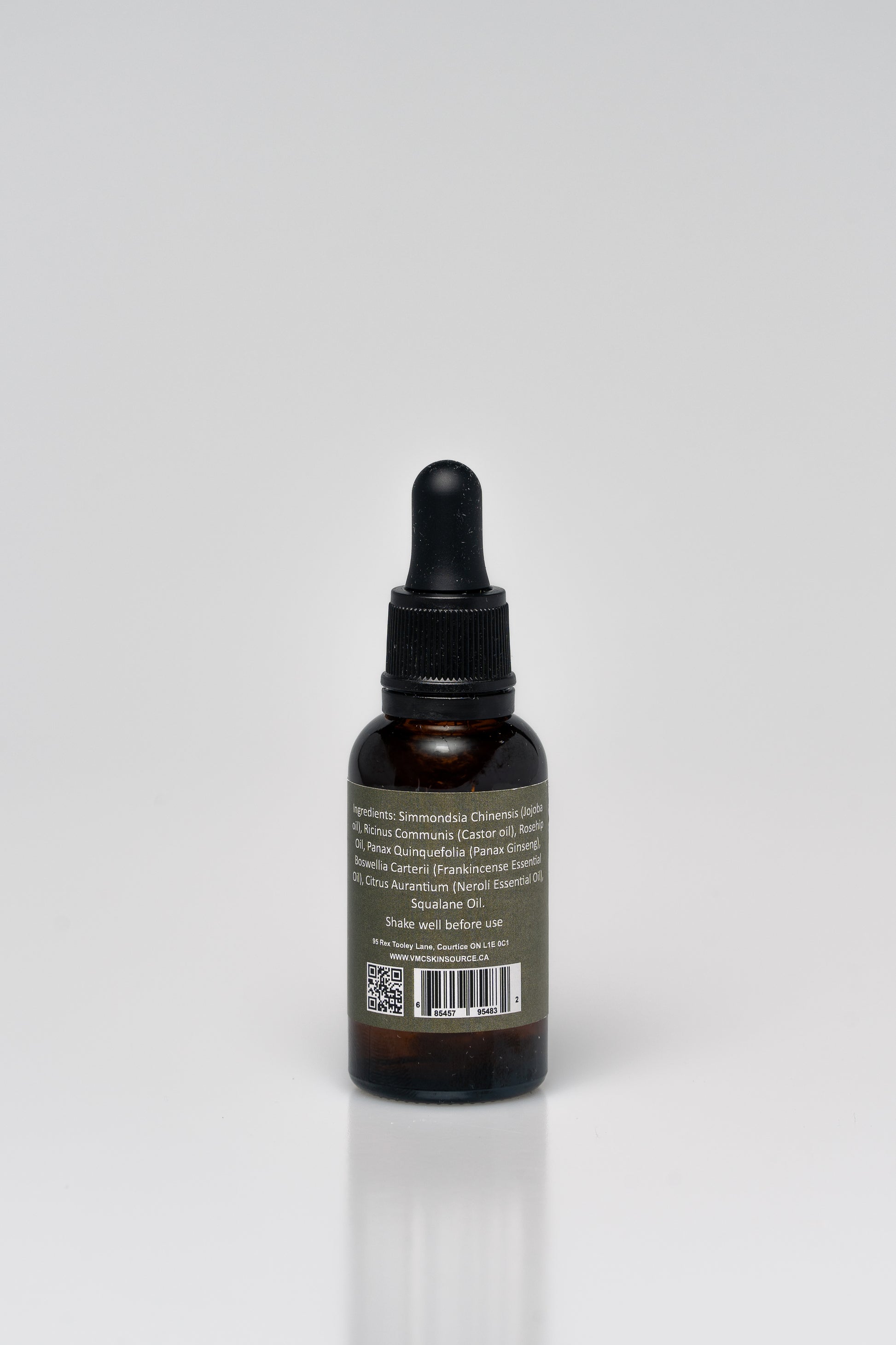 Simmondsia Chinensis (Jojoba Oil), Ricinus Communis (Castor Oil), Rosehip Oil, Panax Quinquefolia (Panax Ginseng), Boswellia Carterii (Frankincense Essential Oil), Citrus Aurantium (Neroli Essential Oil). Squalane Oil.