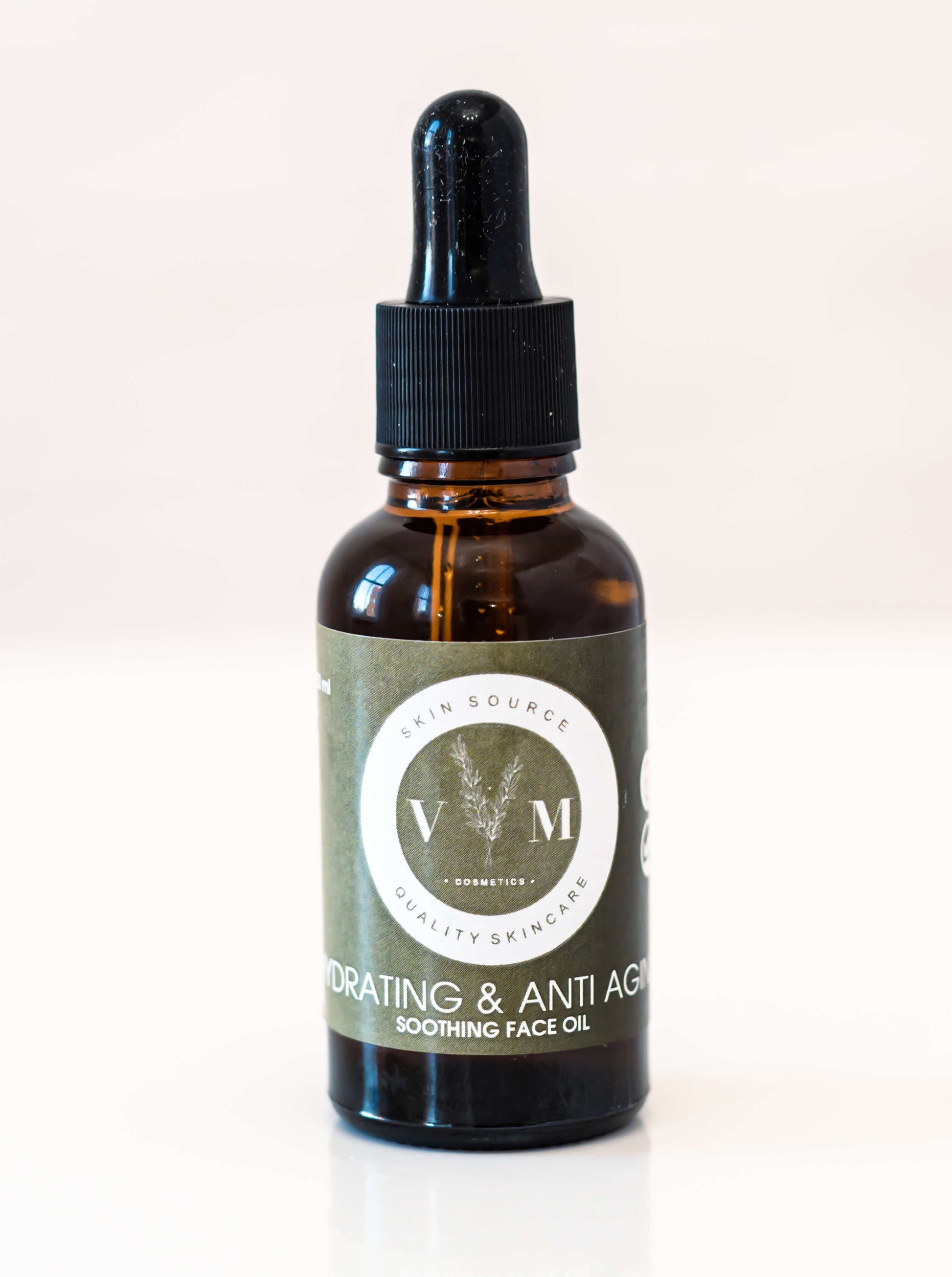 Our Hydrating & Anti-Aging Soothing Face Oil, hydrates and brightens the skin.
