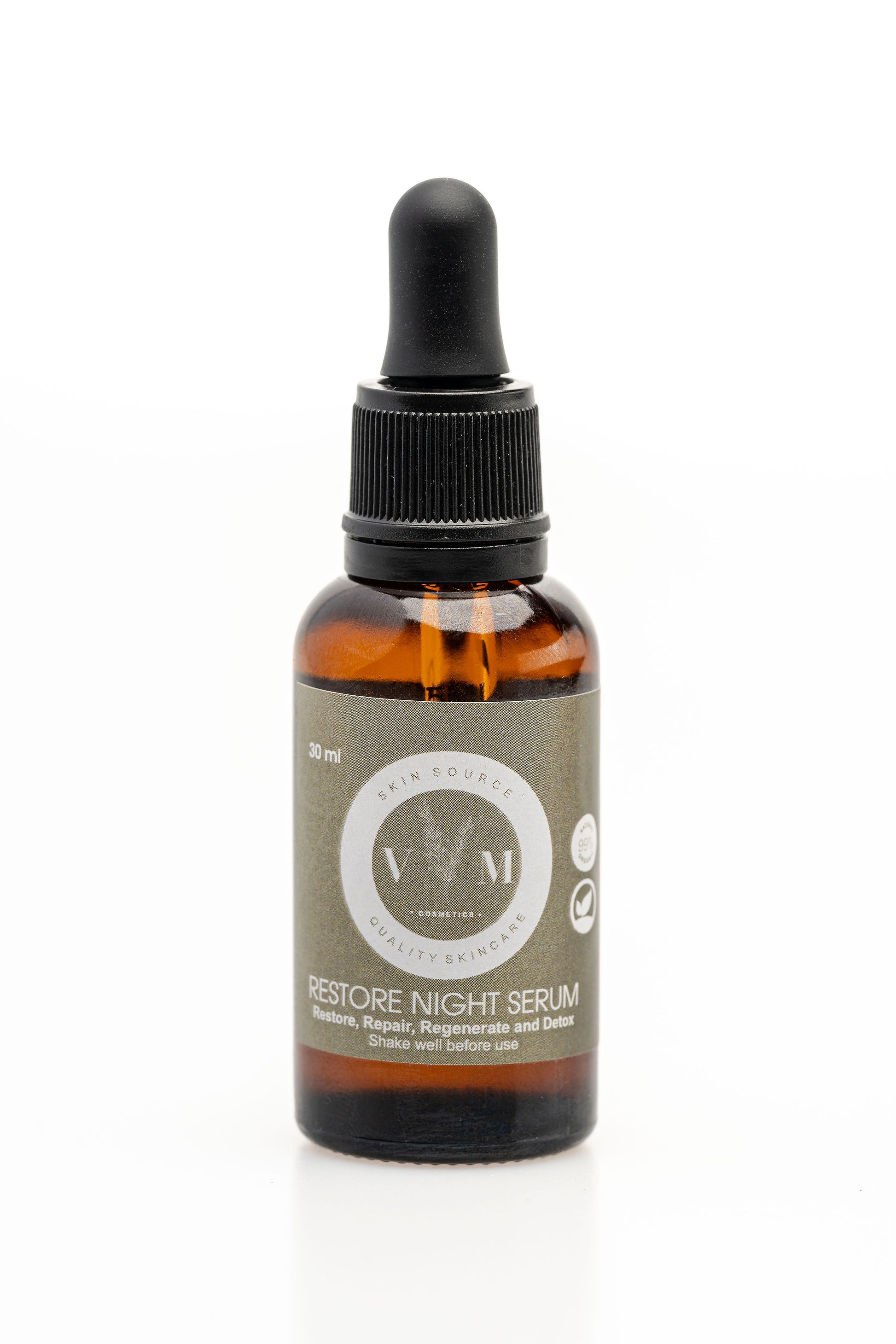 Introducing our Restore Night Serum - Rosehip Power of 7, a blend of 7 superfoods packed with anti-inflammatory and antioxidant properties to rejuvenate your skin. Formulated with Jojoba Oil, Castor Oil, Rosehip Oil, Carrot Seed Oil, Burdock Root Oil, Frankincense, and Squalane, this serum offers a natural alternative to Retinol without harsh chemicals.